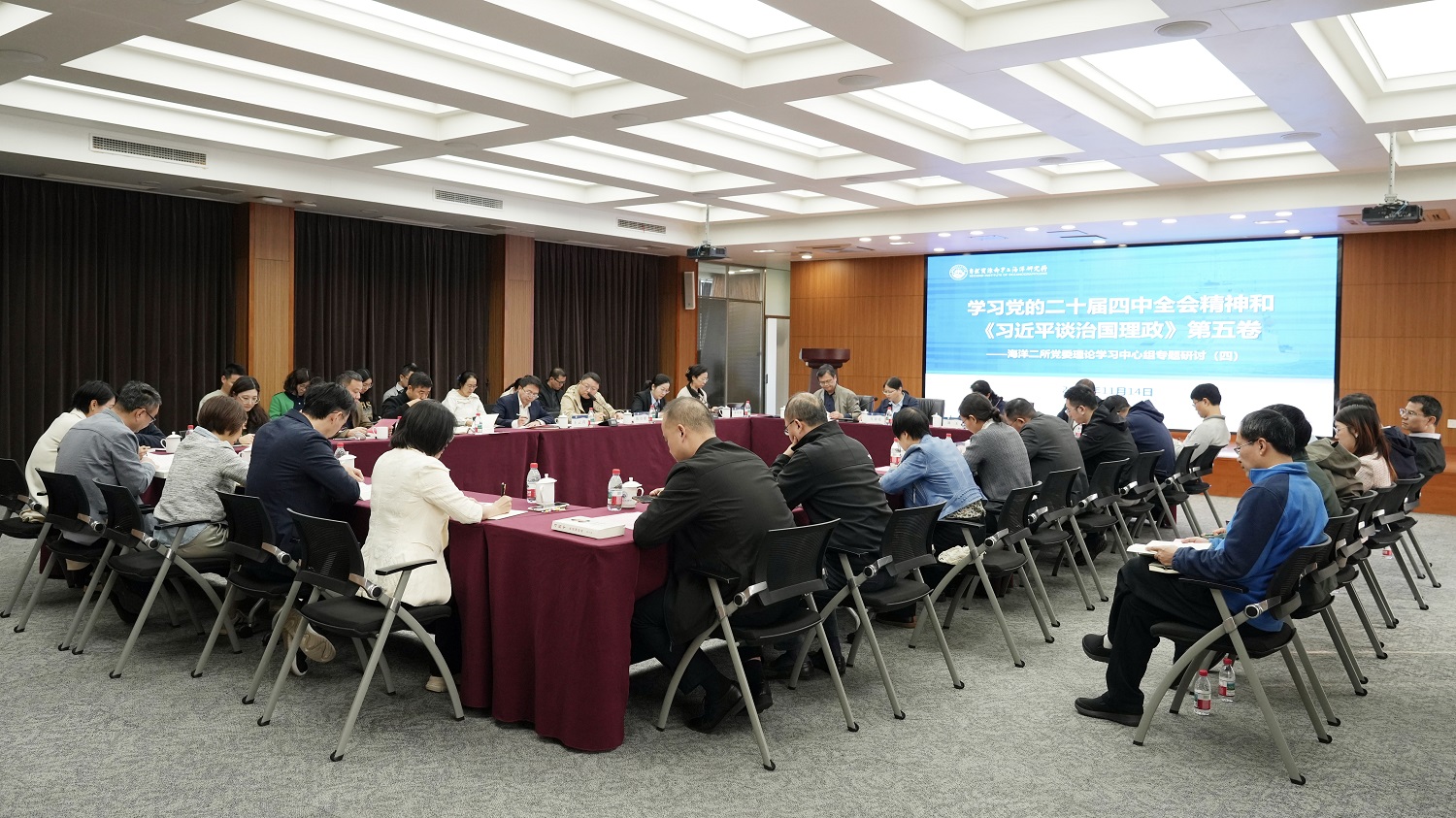 11月14日,我所党委理论学习中心组召开专题研讨会,深入学习领会党的二十届四中全会精神,深化《习近平谈治国理政》第五卷学习,围绕“学论述、谋发展、见行动”开展集中交流研讨。