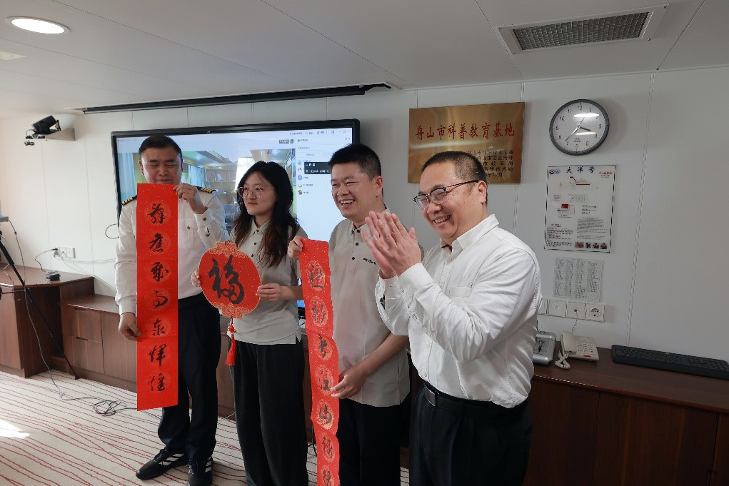 起航前,傅斌副所长带队开展安全检查和航前动员,并向全体科考队员赠送由我所退休老同志撰写的春联和福字,向春节期间坚守一线岗位的科研人员致以新春祝福,勉励队员们坚定信心、团结协作,在确保安全的前提下高质量完成航次任务,为我国深海事业发展贡献智慧和力量。