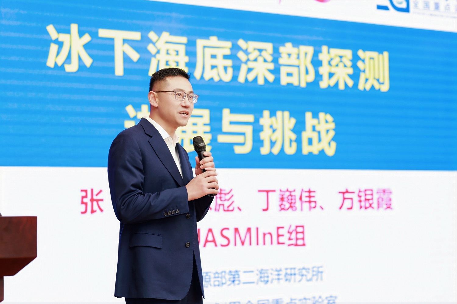 海底科学与划界全国重点实验室张涛研究员的报告《北极冰下深部探测进展与挑战》则展示了我所科研团队在冰下海底地震仪和冰下设备精准感知定位等“卡脖子”技术方面的突破。面对北极高纬冰下海底这个地球深部探测的盲区,我所在2021年主导实施了JASMInE国际联合科学考察航次,依靠国产设备在密集冰区首次成功实施了大规模海底深部地震和电磁探测,打破了国际上冰下地球物理探测“不可能”的断言。基于冰下海底深部探测核心技术和装备的突破,科研人员首次获取了北冰洋加克洋中脊深部固体-流体结构,提出主动地幔上涌为主的岩石圈增生模式,极大丰富和完善了全球洋中脊动力演化理论,在全球板块构造领域发出了中国科学家的声音,相关研究成果发表在《自然》期刊。