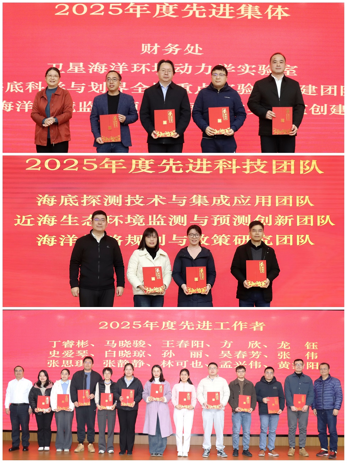 之后,傅斌副所长宣读了2025年度所先进表彰名单,勉励全所干部职工向先进看齐,再创佳绩。全体所领导为获得先进集体、先进科技团队和先进个人的职工和集体颁奖。