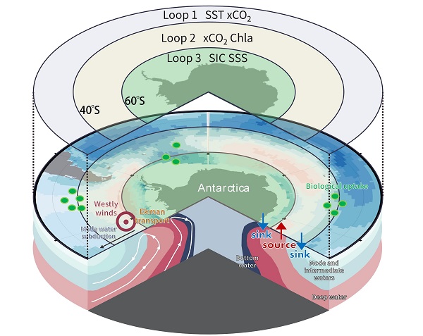 1.南极环(Antarctic Loop) —— 以盐度与海冰为核心调节因子。海冰的生成与融化通过淡水输入和气体交换通道控制碳释放与吸收,是高纬海洋碳通量变化的关键;